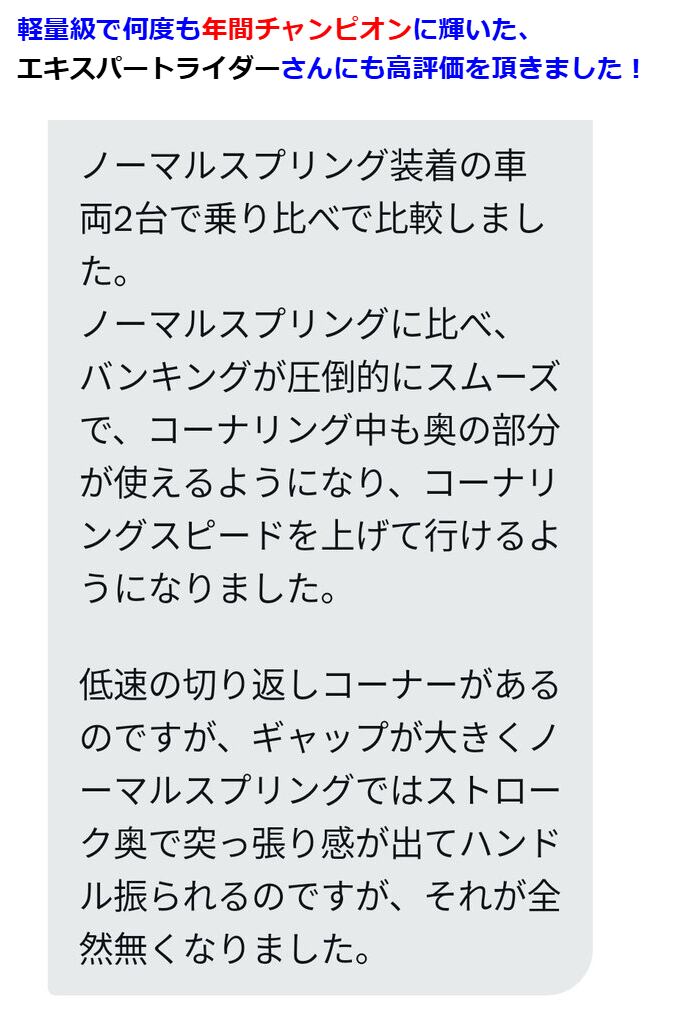 ダブルレートの街乗りスプリングをやめ、サーキットでは標準のシングルレートスプリングを国内生産
