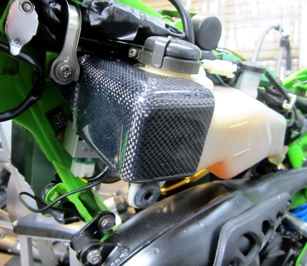 既に廃盤となっている、KSR純正オイルタンクの劣化・穴あきを防ぐ、カーボンカバー