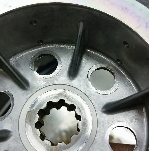 ノーマルのクラッチスプリングは、クラッチボスに食い込み、座屈することでリリースポイントが変わり、クラッチボスが損耗するだけではなく、エンジンオイルに摩耗粉が混入してしまいます。